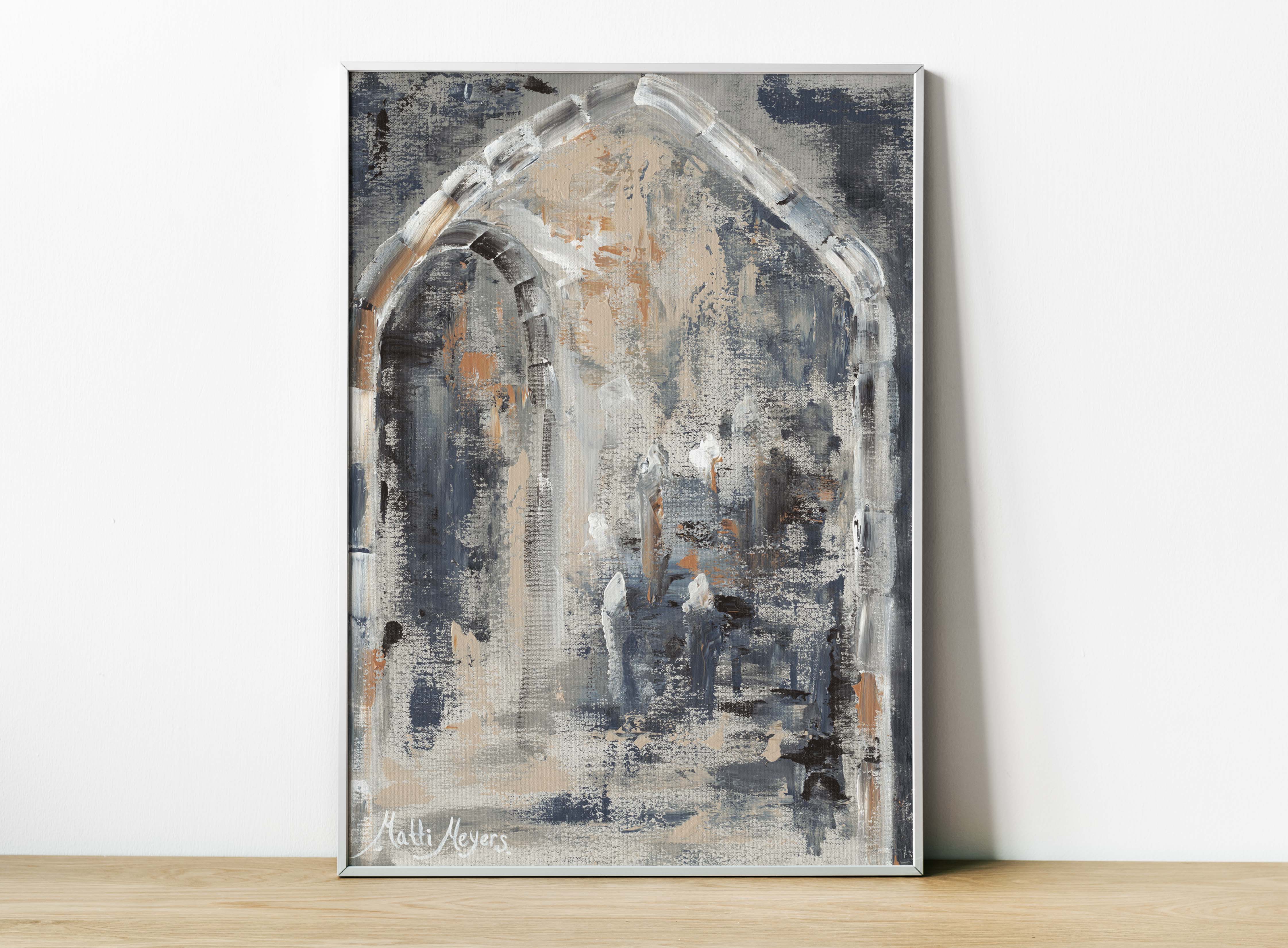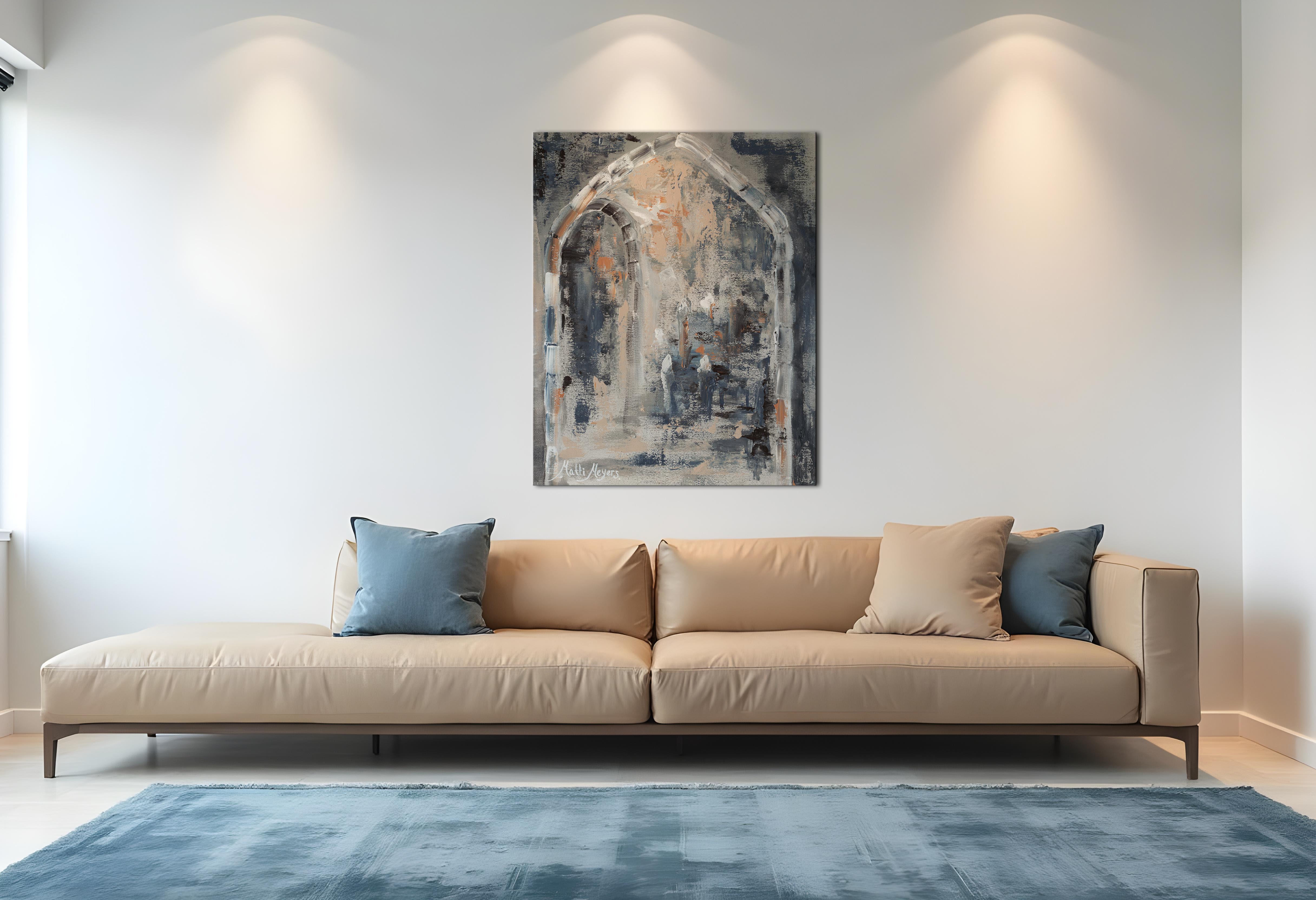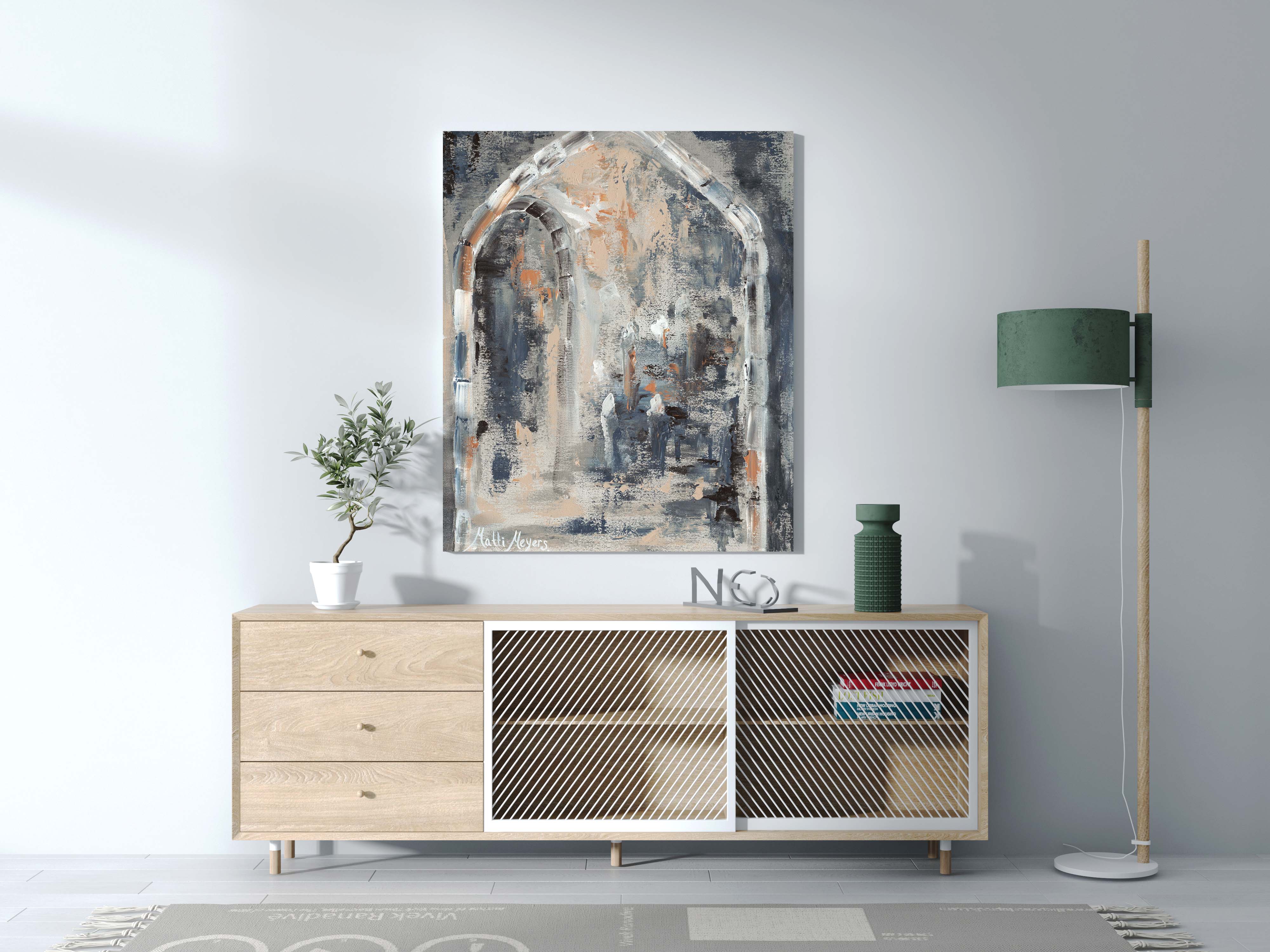 This painting is a capture of the inspirational spirit at the Old City, Jerusalem. The contrast in colors and abstract style provide the elegant and modern look. Original painting size: 40 x 50 cm.